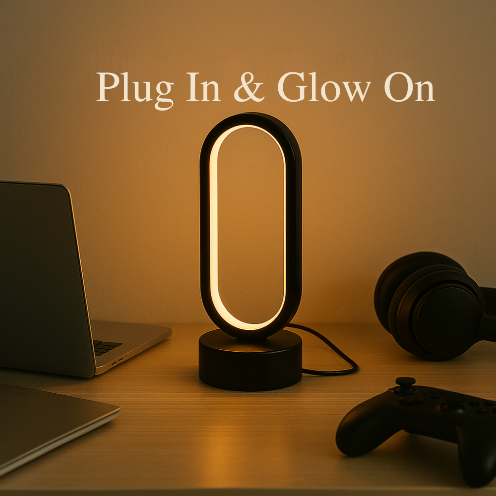The HaloGlow™ lamp runs on USB power (5V) for easy plug-and-play setup with laptops, power banks, or smart plugs.